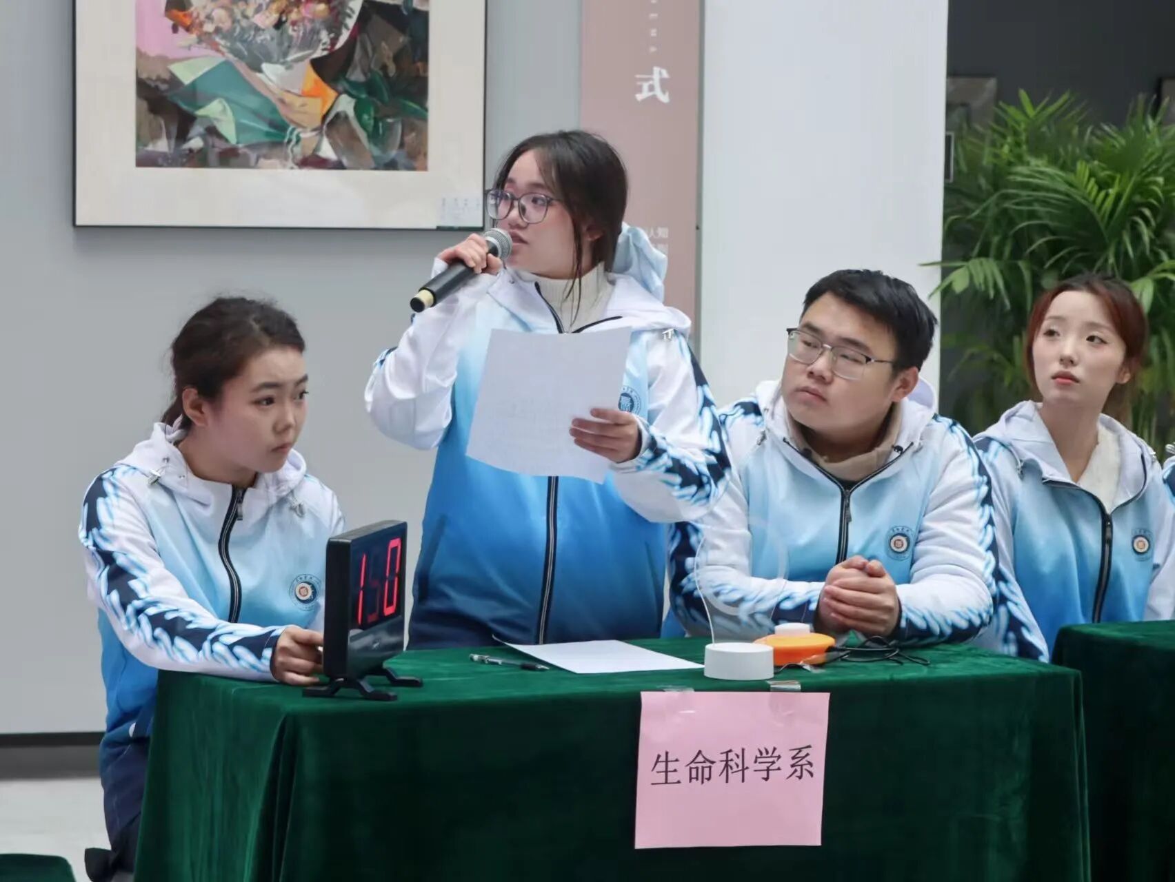 经过前期初赛选拔,十五个院系分别组成三人代表队参加此次复赛。复赛共分两场:南校区代表队和北校区代表队各一场。比赛中,“必答题”环节,各队选手稳定发挥,尽显扎实知识储备;“抢答题”环节,各队反应敏捷,接受抢答技巧与知识输出的双重考验;“冲刺题”环节,队员们默契配合、深析材料,表达清晰,展现了深厚的党史知识底蕴。