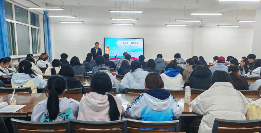 为厚植师生家国情怀,强化国防观念,10月21日下午,图书馆联合马克思主义学院共同打造的“书香+思政”特色军事理论课在图书馆悦享空间II举办。本次课程以“国家安全”为主题,由马克思主义学院团委副书记李振国老师主讲,思政2501、2502班近100名学生参与,在书香与理论的碰撞中,开启了一场沉浸式国防教育之旅。