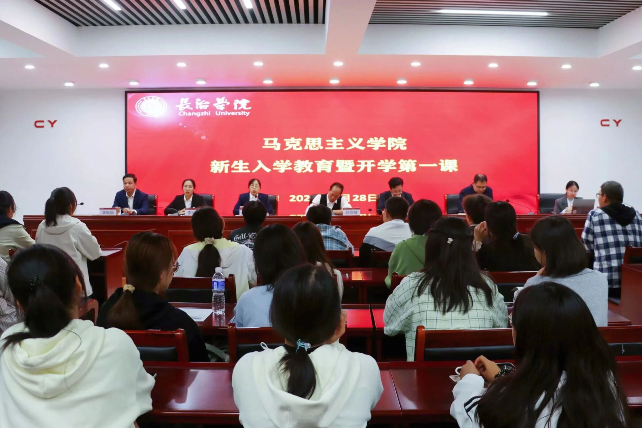 为助力2025级新生快速适应大学生活、明确学习目标、了解学院专业特色与育人理念、引导新生树立正确的学业观与价值观,马克思主义学院于2025年9月28日在办公楼一号会议室举行2025级新生入学教育暨开学第一课。马克思主义学院党委书记赵晋耀、主任刘隆、党委副书记李晋丽、副主任闫建华、办公室主任李瑞敏、团委副书记李振国、专职组织员李哲洋出席会议,2025级全体新生参加会议,会议由李晋丽主持。