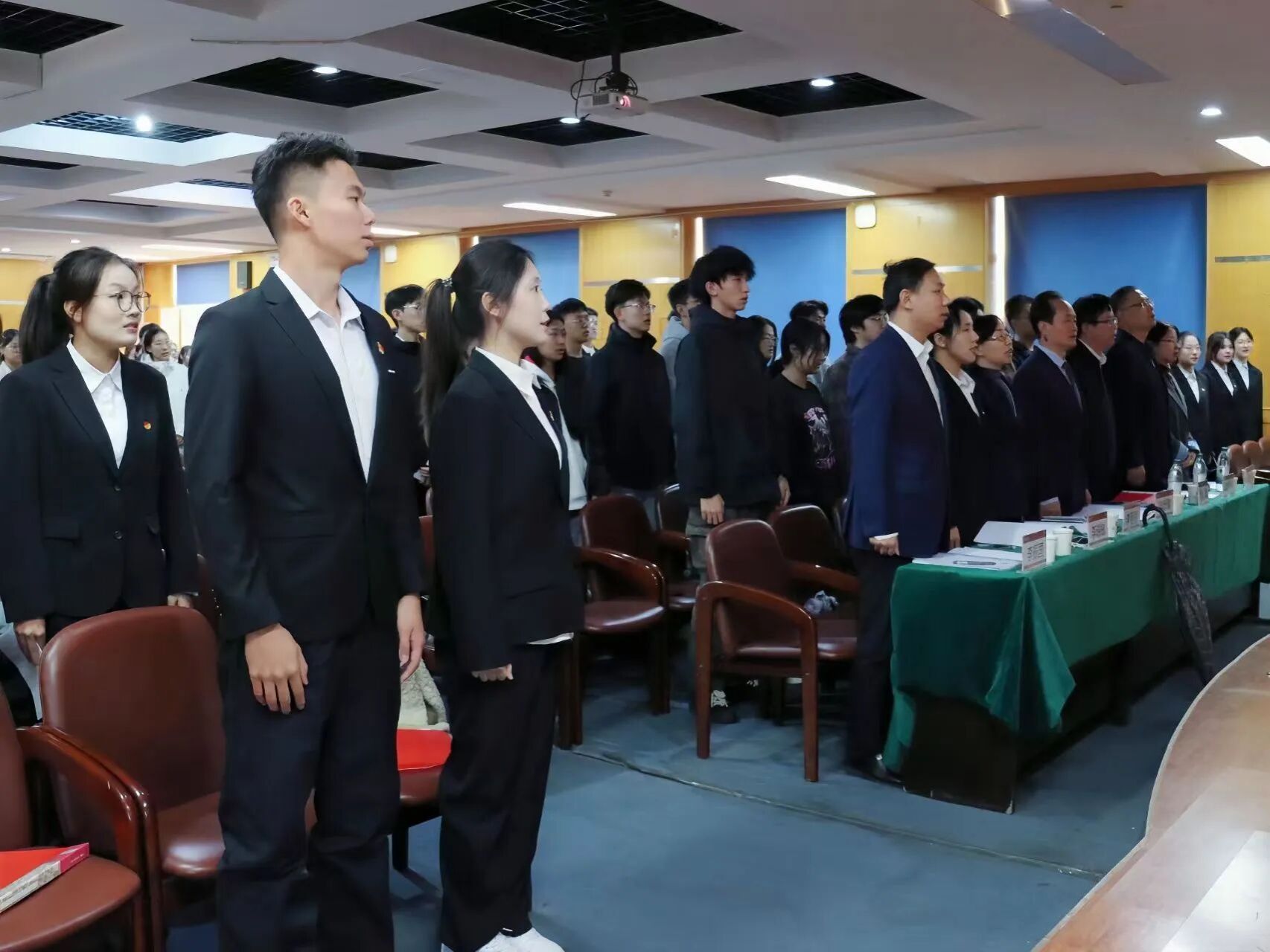 为进一步健全我院学生自治组织建设,保障学生会工作的专业性与创新性,选拔一批政治素养高、服务意识强的学生骨干,全面落实我院党委、团委关于学生工作的部署要求,充分激发学生会组织活力,2025年10月10日,马克思主义学院第十四次学生代表大会在南校区逸夫教学楼学术报告厅召开。马克思主义学院党委书记赵晋耀、主任刘隆、党委副书记李晋丽、副主任闫建华、办公室主任李瑞敏、团委副书记李振国、专职组织员李哲洋出席,校团委、学生会、各团学组织及兄弟院系学生骨干参加。